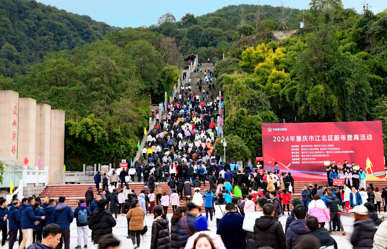 2月23日上午,体彩杯2024年重庆市江北区新年登高活动在铁山坪森林公园举行。